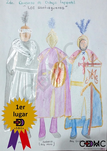 El dibujo ganador del 1er lugar en el 2do Concurso de Dibujo Infantil «Los Santiagueros», nos presenta a las tres Coronas Grandes, es decir, a los tres papeles principales de la Relación. El Rey Moro, el Sabario, general al servicio del Rey Moro, y el Rey Cristiano. A cada personaje lo distingue un elemento distintivo: El Rey Moro, que utiliza corona y un cetro; el Sabario, el más llamativo de los tres por el morrión que cubre su cabeza y rostro, y el Rey Cristiano, con el estandarte, que es a su vez uno de los símbolos distintivos de cada Santiaguería.