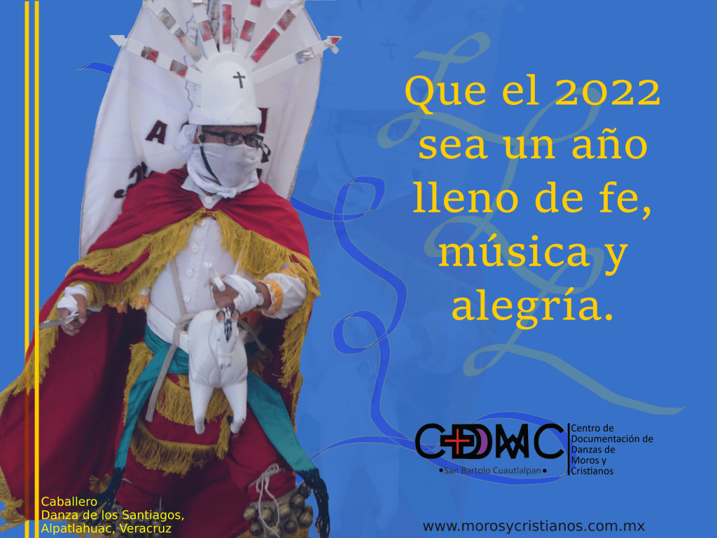 De parte del Centro de Documentación de Danzas de Moros y Cristianos «San Bartolo Cuautlalpan», queremos desearles un muy feliz Año Nuevo 2022. Esperamos que se encuentren acompañados de su familia y seres queridos. Por un 2022 lleno de fe, música y alegría.